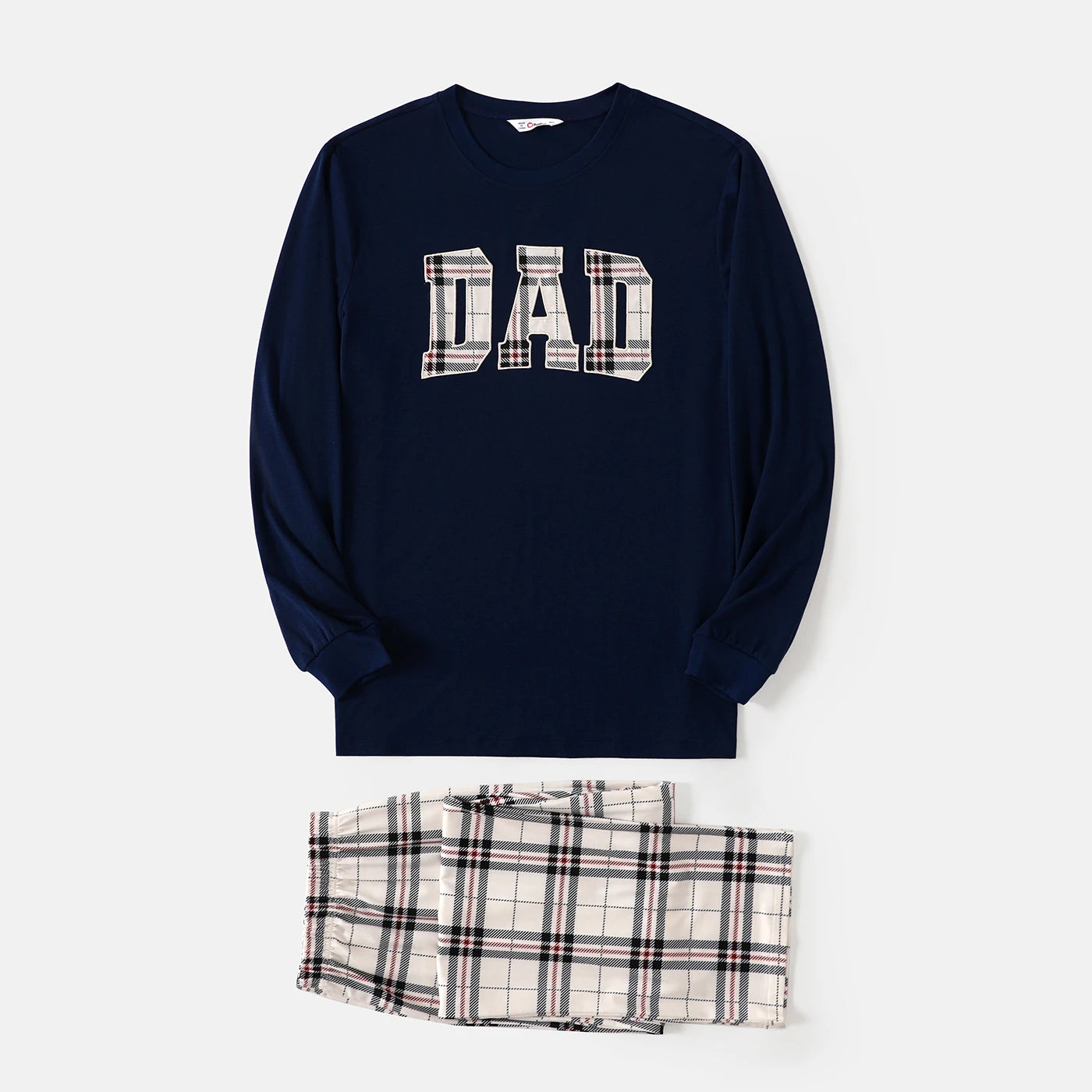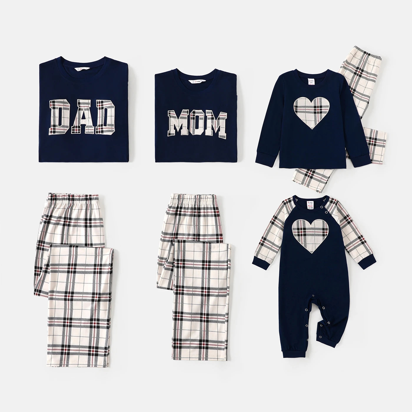 Matching Grid Design: Coordinated checkered/grid pattern with playful letter prints for the whole family