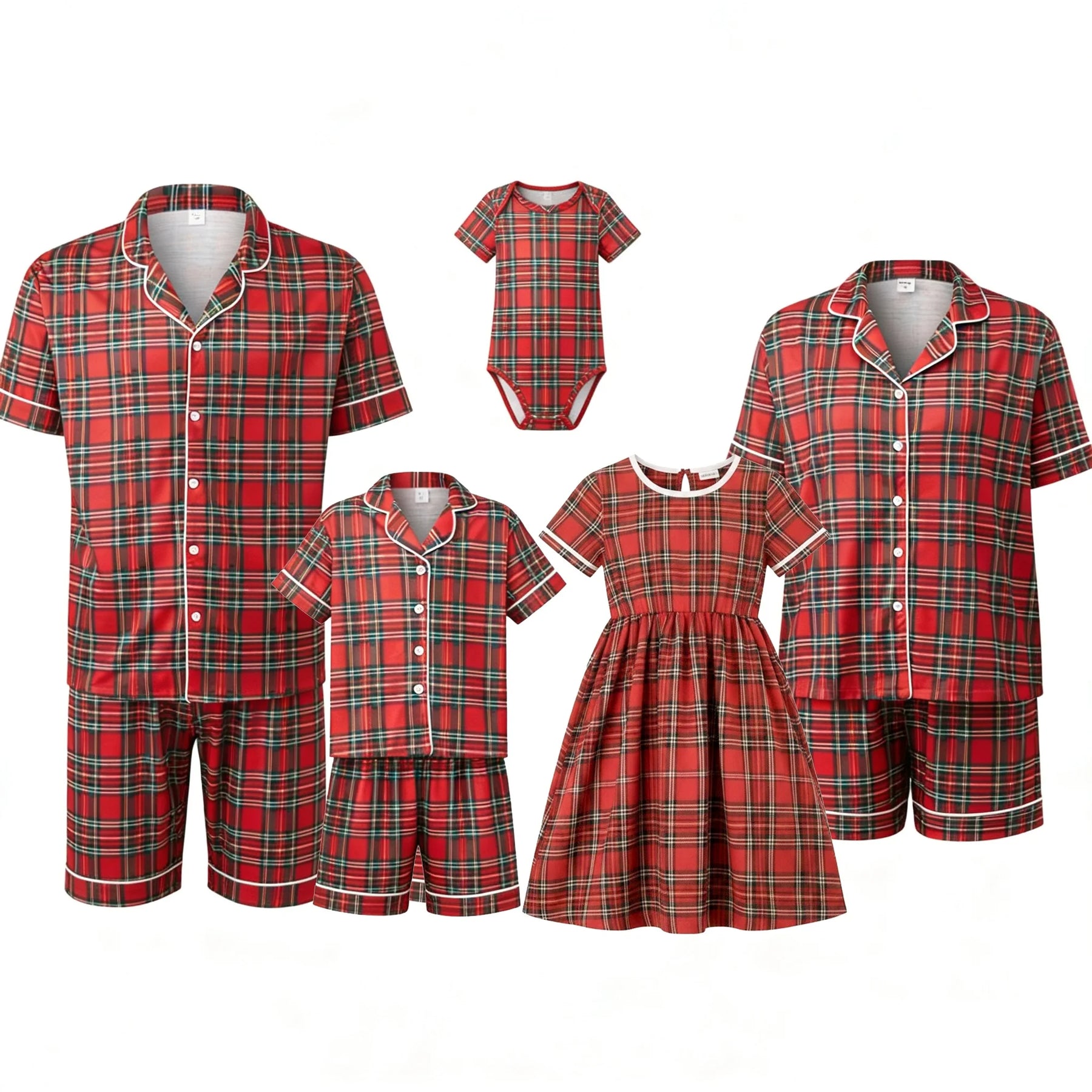 ✨ Stay cool and coordinated in classic red plaid summer pajamas! These lightweight matching sets bring timeless style and comfort to warm-weather family moments.